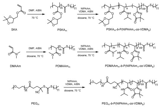 2.3. Synthesis of the Block Copolymer PSKA-b-P(NIPAAm-co-VDMA)