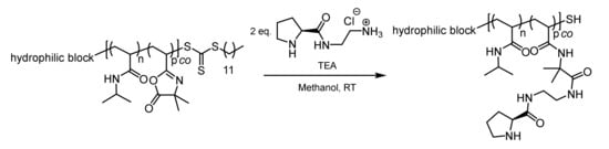 - Lu, A.; Smart, T.P.; Epps, T.H.; Longbottom, D.A.; O’Reilly, R.K. L-Proline Functionalized Polymers Prepared by RAFT Polymerization and Their Assemblies as Supported Organocatalysts. Macromolecules 2011, 44, 7233–7241. [Google Scholar] [CrossRef]