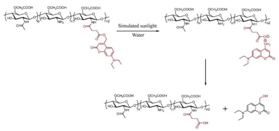 Mechanism of the photolysis of the CMCS-DEACMS upon simulated sunlight.