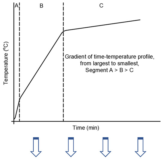 To summarize the major points that were deduced across the scale of observations, a schematic temperature–time profile of an FR coating on a steel substrate was prepared and shown in Figure 10. Three different segments were highlighted in the profile based on the observations presented in earlier sections, and the importance of those segments and the key parameters governing those segments are elaborated further in the table associated with Figure 10.