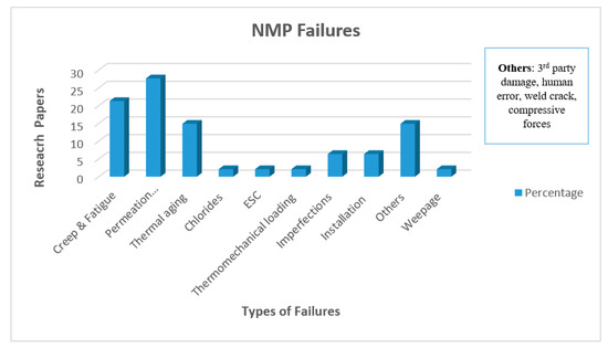 The failures occurring in the NMP materials were demonstrated in Table A1, while the frequency of failures is shown in Figure 4: