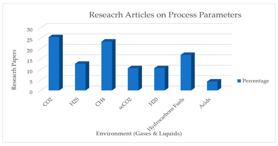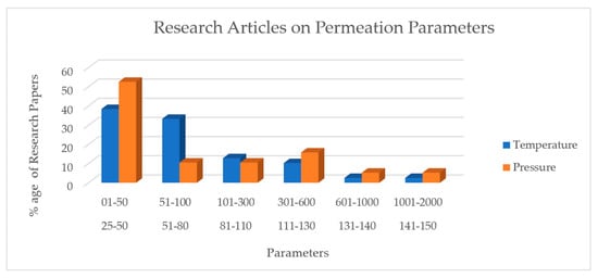 Temperature and pressure also play an important role in the permeation phenomenon. The different polymeric material behavior was assessed using these parameters. Figure 6 shows the percentage of research articles published on these parameters within the previous years from 1996–2020.