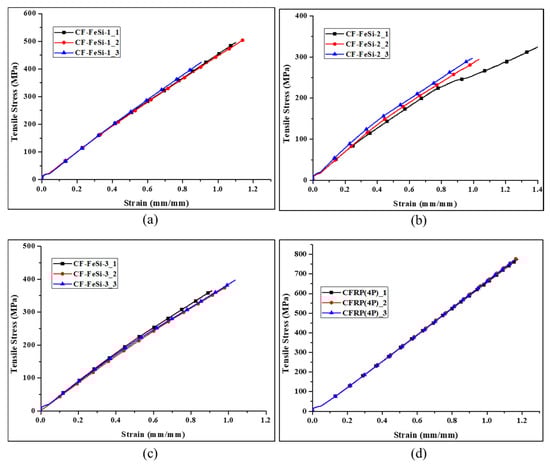 In recent years, carbon-fiber-reinforced polymers (CFRP) composites have continued to emerge in industrial and commercial applications in areas such as aerospace, aircraft, automobiles, transportation, construction, etc. [1,2,3,4,5,6,7] Nowadays, as the interest in those composites continue to grow and they are generally not magnetic materials, it is believed that the application of those composites can be extended if they are magnetically conductive [8,9]. Carbon fibers, owing to their high specific strength, high specific stiffness, good fatigue strength and low density, are commonly used as reinforcing materials in polymer [10] and metal matrix composites [11]. The carbon-fiber-reinforced polymer composites are the main materials used to replace some metallic parts in the various engineering structures while saving the weight of the overall structures.