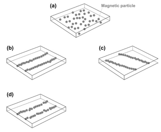 First (pre-deformation), the original strip (a) is programmed via stretching (b) preferably at high temperatures for better shape fixity ratio and higher shape recovery ratio (refer to Figure 14). Although illustrated here is the case of uniaxial stretching, programming may be carried out in other modes, such as biaxial stretching, compression, and twisting, etc., or a combination of them.