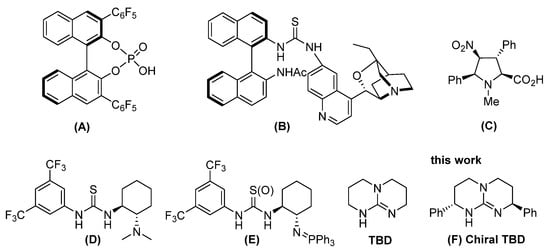 Chiral organocatalysts (A–F) used for the stereocontrolled ROP of rac-LA.