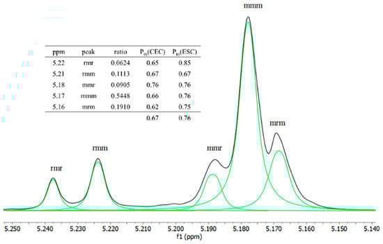 The homodecoupled 1H NMR spectrum after deconvolution of the sample (run 7, Table 1).
