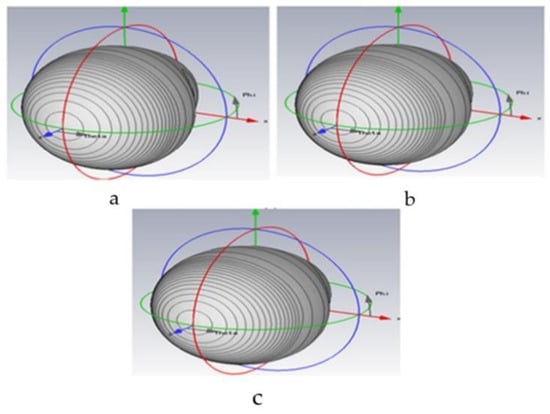 Antennas performance (a) 3-D Radiation pattern at 1.79 GHz for OPEFF/PCL, (b) 3-D Radiation pattern at 1.80 GHz for NiO/PCL, and (c) 3-D Radiation pattern at 1.724 GHz for NiO/OPEFF/PCL.