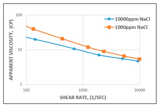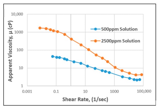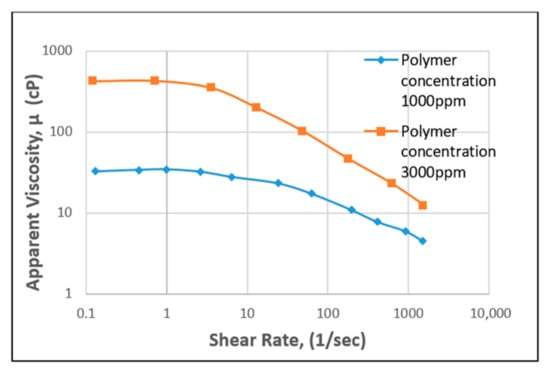 Apparent viscosity vs. shear rate of HPAM. Reprinted and modified from [54].