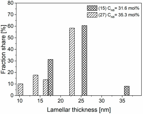 Distribution of lamellar thickness for E-NB copolymers obtained using the catalysts SIL/C4 and SIL/C6 (items according to Table 1).