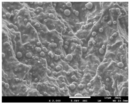 The SEM image of prepared MRE material is shown in Figure 2. It can be seen that spherical CIPs were uniformly distributed in the matrix, and almost no porosity was observed in the sample. This microstructure suggests that a dense and homogeneous MRE material was obtained in this work.