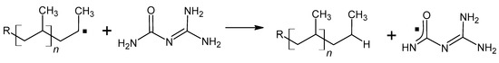 Possible radical inhibition/retardation of PP chain unzipping by reaction with guanylurea.