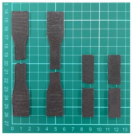 A field emission scanning electronic microscope (JEOL Model JSM-7500F, Tokyo, Japan) was used to examine the morphology of the 3D-printed parts. The thermal properties of the CFR-PLA filaments of the printed parts was assessed with a TA Instruments model DSC25 differential scanning calorimeter (New Castle, DE, USA). The scan temperature was set to range from 30 to 250 °C, where the heating rate of the specimen was 10 °C/min.