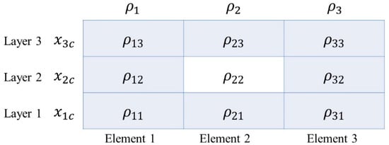 Gersborg and Andreasen originally applied the explicit parameterization for casting constraints in topology optimization of castable designs [29]. The first manufacturing constraint in this study is to prevent intermediate void. It is well known that the thickness topology variables are independent from each other, so an intermediate void structure tends to be obtained after the optimization if there are no manufacturing constraints. Taking a three-layer laminate in Figure 1 as an example, if and the elements around the central element , then the intermediate void will present, which will have a negative impact on the structural performance and should be prevented.