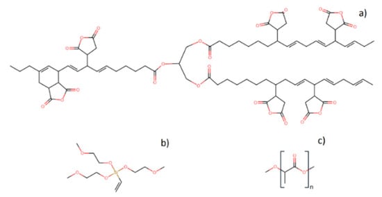- Arrieta, M.P.; Samper, M.; Jiménez-López, M.; Aldas, M.; López, J. Combined effect of linseed oil and gum rosin as natural additives for PVC. Ind. Crop. Prod. 2017, 99, 196–204. [Google Scholar] [CrossRef]