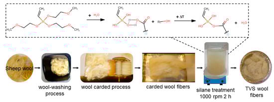 - Conzatti, L.; Giunco, F.; Stagnaro, P.; Patrucco, A.; Tonin, C.; Marano, C.; Rink, M.; Marsano, E. Wool fibres functionalised with a silane-based coupling agent for reinforced polypropylene composites. Compos. Part A 2014, 61, 51–59. [Google Scholar] [CrossRef]