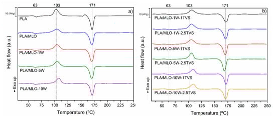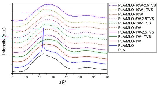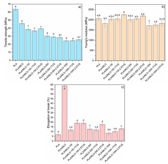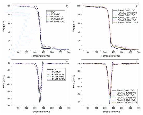 | PLA/MLO-5W-2.5TVS | 59.5 ± 0.3 b | 105.9 ± 0.4 a,b | 168.5 ± 0.3 b | 16.5 ± 0.4 a,g | 300.0 ± 3.0 d,e | 359.0 ± 1.0 a,e,f,g | 4.6 ± 1.4 c,d,e | 32.2 ± 2.3 b,c,d |