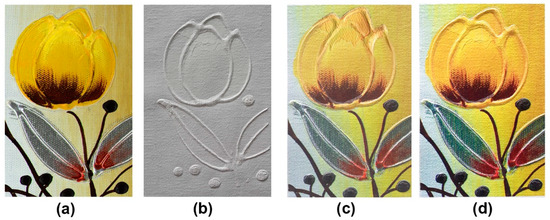 - Chen, C.; Wang, X.C.; Chen, G.X. Photogrammetry-based 3D digitization Method for Oil Paintings. In Proceedings of the NIP Conference, Society for Imaging Science and Technology, Denver, CO, USA, 5–9 November 2017; Volume 1, pp. 5–8. [Google Scholar]