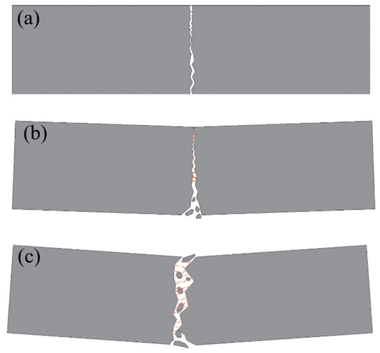 Based on the concentrations of mixed CF, failures of specimens could be divided into three types displayed in Figure 4a–c with respective ductility growing.