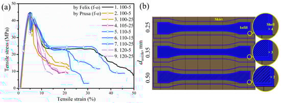 - Pan, A.; Huang, Z.; Guo, R.; Liu, J. Effect of FDM process on adhesive strength of polylactic acid(PLA) filament. Key Eng. Mater. 2016, 667, 181–186. [Google Scholar] [CrossRef]