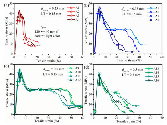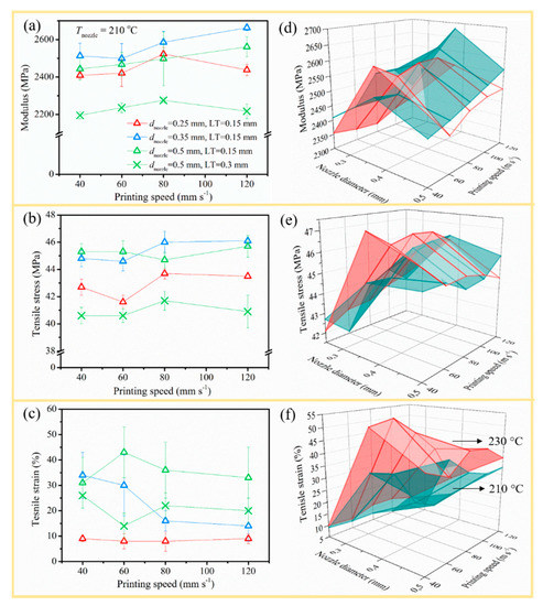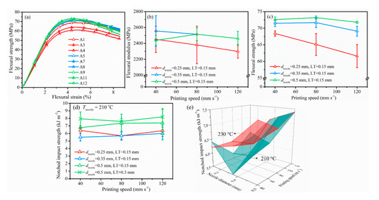 | No. | dnozzle (mm) | vprint (mm s−1) | Strength (kJ m−2) | Modulus, EF (MPa) | Strength, σF (MPa) |