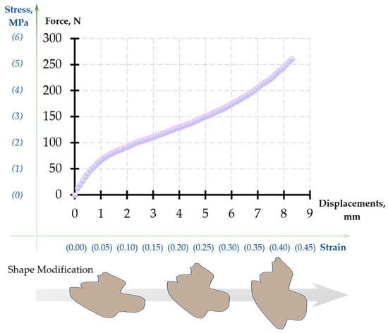 The typical raw compression curve for the foam recorded by the test device is shown in Figure 6. Young’s modulus was determined from the initial gradient of the plot.
