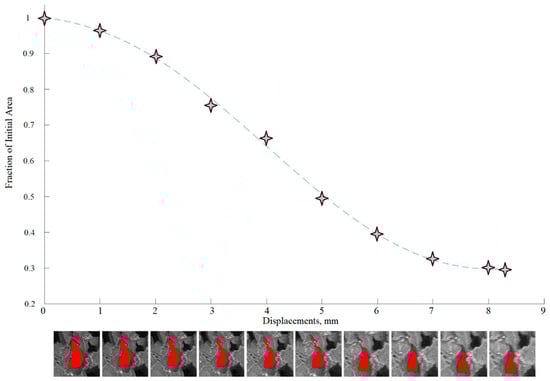 Area progression graph showing qualitative values for the area of a central void during compression.