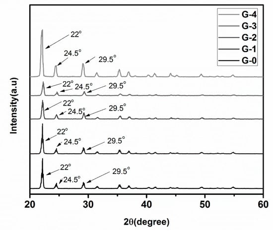 The XRD analysis for all formulations is presented in Figure 3. In uncoated urea granule (G-0), the characteristic diffraction peaks were observed at 22°, 24.5°, 29.5° and 35°. More dominant peaks were present in the range of 22°to 25°. All coated formulations showed similar sharp peaks in the range of 22° to 25°[63].