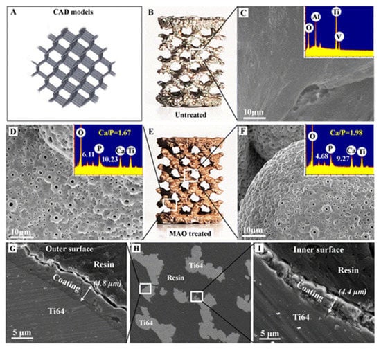 - Xiu, P.; Jia, Z.; Lv, J.; Yin, C.; Cheng, Y.; Zhang, K.; Song, C.; Leng, H.; Zheng, Y.; Cai, H.; et al. Tailored surface treatment of 3D printed porous Ti6Al4V by microarc oxidation for enhanced osseointegration via optimized bone in-growth patterns and interlocked bone/implant interface. ACS Appl. Mater. Interfaces 2016, 8, 17964–17975. [Google Scholar] [CrossRef]