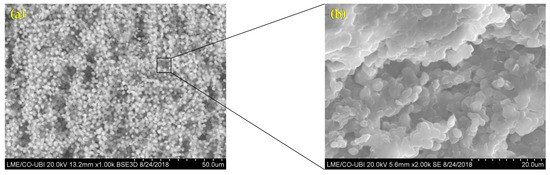 The morphological features of the microalgae and MFC-NFC-CMC matrix materials were characterized using SEM. Figure 1 shows the structure of the microalgae Chlorella vulgaris sample. These microalgae presented as a freshwater unicellular and were spherical, with a cell size between 1 and 3 µm in diameter. These obtained diameters are due to the conditions used to produce Chlorella vulgaris. Cell sizes are increased when culture conditions are induced, such as light intensity and glucose [29,30].