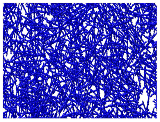 Example of 3D biopolymeric matrix obtained through the 3D fibrous-based computational simulator.