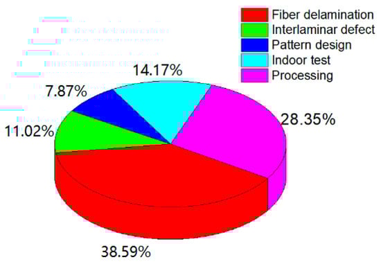 The rubber-fiber composite has become the most preferred type of skeleton in the rubber industry. This is due to its excellent mechanical properties, as can be seen in common rubber products such as tires, air springs, and transport belts [1,2,3,4]. Researchers can design different rubber-fiber composite products according to their wishes, but the actual performance of these composites can be far from desired. According to the U.S. Department of Transportation, there have been 1718 tire recalls in recent years, and problems directly related to rubber-fiber composite materials, including fiber delamination and interlaminar defects, account for 49.6% of such recalls (Figure 1). The main reason is because the existing research focuses on macro composite mechanics. Researchers have focused on the composite structure adopting equivalent stress and ignored the interface problem [5]. The rubber-fiber composite’s fine internal cord structure, combined with rubber, should be further investigated. The uncured rubber compound has not been cross-linked, so its tensile strength is low. The rubber-fiber interface has not formed a Cu-S chemical bond and is only bound by the van der Waals force, so the bonding strength is low too, which makes it difficult to detect by conventional means. The measurement and research of uncured rubber can deepen the understanding of its mechanical behavior. Whether the mold cavity can be filled in the rubber molding process and the flow behavior of uncured rubber during the molding process will greatly affect the quality of the finished rubber composite. However, there is still a lack of research in this area. Therefore, it is urgent to find a reliable measurement method for uncured rubber. At present, there is no direct testing method for uncured rubber compounds with excellent reproducibility. In the building process, there exists highly complex nonlinear deformation. Thus, indirect means make it difficult to reflect the actual stress-strain state and cannot provide reliable data support for establishing the model. It is difficult to obtain accurate stress-strain values using common measuring methods to measure uncured rubber because of the large data dispersion caused by problems with the clamping method and accuracy.