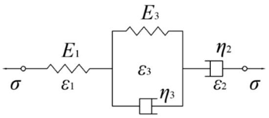 The strain of this model consists of three parts: elastic deformation ε 1 , viscous flow deformation ε 2 , and viscoelastic deformation ε 3 . Their stress relationships are as follows: