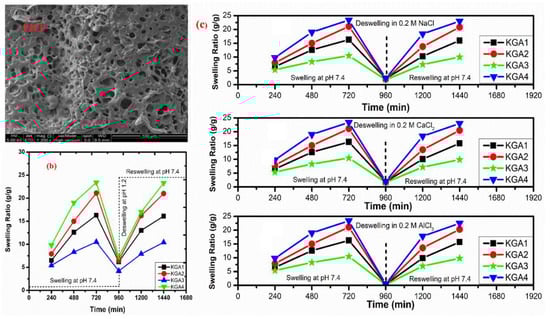- Tanan, W.; Panichpakdee, J.; Saengsuwan, S. Novel biodegradable hydrogel based on natural polymers: Synthesis, characterization, swelling/reswelling and biodegradability. Eur. Polym. J. 2019, 112, 678–687. [Google Scholar] [CrossRef]