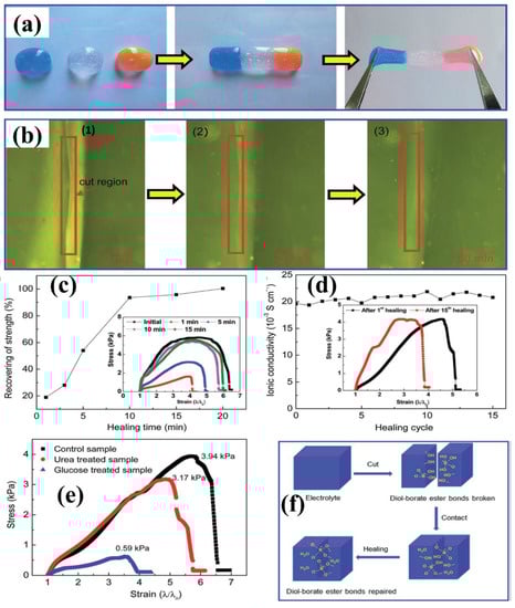 - Peng, H.; Lv, Y.; Wei, G.; Zhou, J.; Gao, X.; Sun, K.; Ma, G.; Lei, Z. A flexible and self-healing hydrogel electrolyte for smart supercapacitor. J. Power Sources 2019, 431, 210–219. [Google Scholar] [CrossRef]