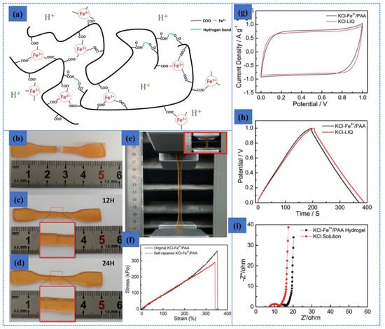 - Wang, Z.; Tao, F.; Pan, Q. A self-healable polyvinyl alcohol-based hydrogel electrolyte for smart electrochemical capacitors. J. Mater. Chem. A 2016, 4, 17732–17739. [Google Scholar] [CrossRef]