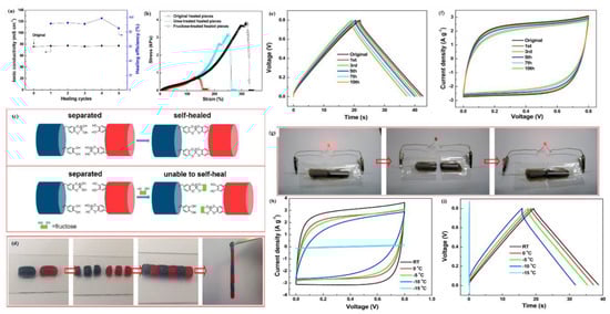 - Tao, F.; Qin, L.; Wang, Z.; Pan, Q. Self-healable and cold-resistant supercapacitor based on a multifunctional hydrogel electrolyte. ACS Appl. Mater. Interfaces 2017, 9, 15541–15548. [Google Scholar] [CrossRef] [PubMed]