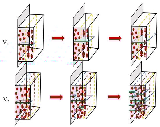 Schematic drawing of failure process of sample V1 and V2 under low initial load.