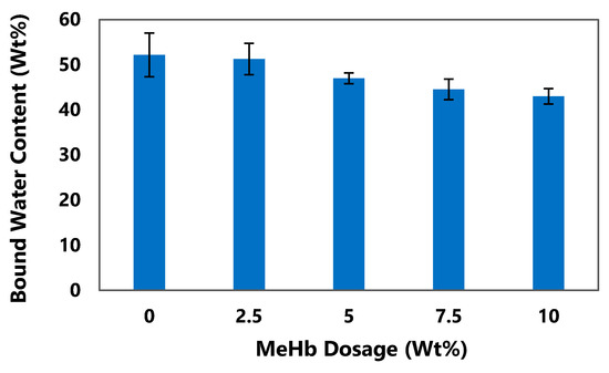 Bound water content in biosludge at different dosage of methylated hemoglobin.