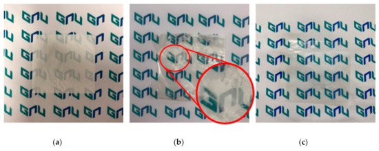 As can be seen from Figure 6b, there is a part where the hydrophilic polymer is difficult to impregnate the hydrophobic support. However, the ion exchange polymer solution was well filled by using a centrifugal force in the porous support. As a result, the crosslinked pore-filling membrane became transparent in the Figure 6c.