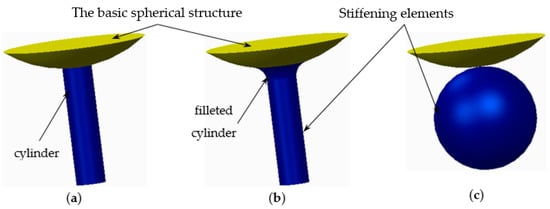 The stiffening elements (a) cylinder; (b) filleted cylinder; (c) sphere.