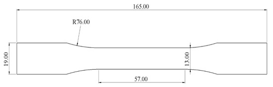 Computer aided design (CAD) design of dog-bone shaped sample.