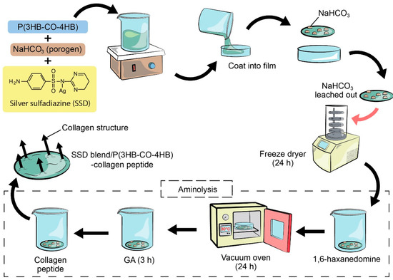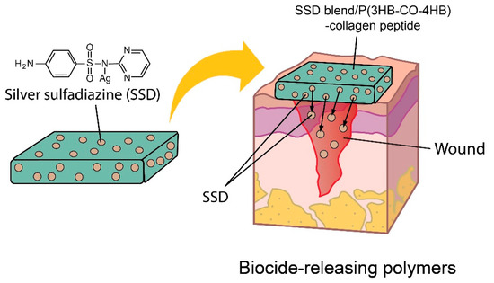 Vigneswari, S.; Gurusamy, T.P.; Abdul Khalil, H.P.S.; Ramakrishna, S.; Amirul, A.-A.A. Elucidation of Antimicrobial Silver Sulfadiazine (SSD) Blend/Poly(3-Hydroxybutyrate-co-4-Hydroxybutyrate) Immobilised with Collagen Peptide as Potential Biomaterial. Polymers 2020, 12, 2979. https://doi.org/10.3390/polym12122979