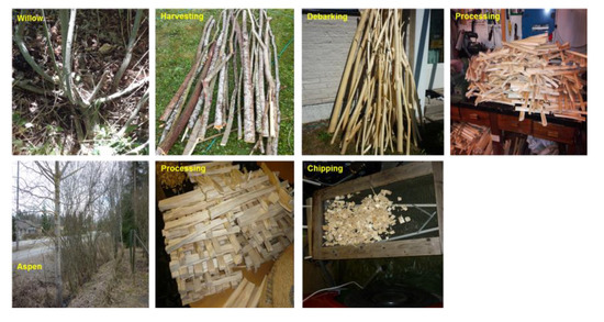 Short-rotation forest (SRF) plantations are gaining attention in many countries, especially when grown for energy production [23]. Among the different fast-growing hardwoods that were proposed for energy uses, willow (Salix) is one of the few that has been planted commercially to a significant extent in the European Union (EU). In Northern Europe, it presents the advantages of high productivity in Nordic conditions [23,24]. European aspen (Populus tremula L.) and hybrid aspen (Populus tremula L. x P. tremuloides Michx.) have proved to be one of the fastest growing deciduous tree species in Nordic countries, with successful breeding and cultivation of hybrid aspen since the early twentieth century [25]. In Finland, aspen is mainly used for paper and energy production [26,27].