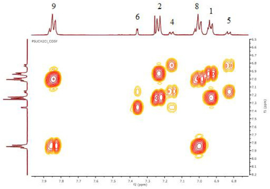 The assignment of the proton’s correlations of the PSUCl was carried out by two-dimensional COSY analysis (Figure 1 and Figure 2).