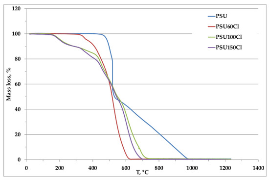 Comparison of thermograms of chloromethylated samples and pristine PSU.