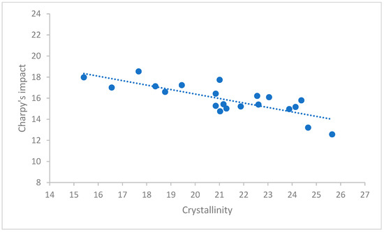 where denotes Charpy’s impact and denotes crystallinity and and are coefficients to be determined using the method of least squares.