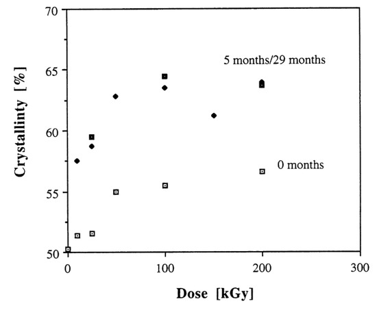 Crystallinity variation with dose and time. Reprinted with permission from [60].