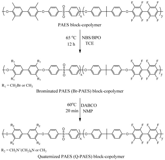 2.2. Synthesis of Quaternized PAES (Q-PAES) Membranes