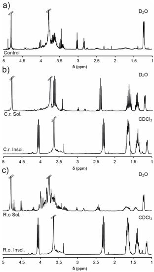 −1), and incubated at 37 °C for 48 h. Subsequently, the soluble and insoluble components were separated via centrifugation and analysed via NMR spectroscopic analysis (