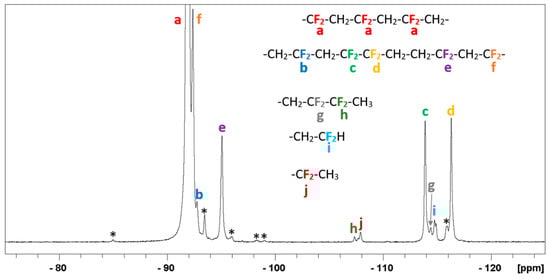 - Guiot, J.; Ameduri, B.; Boutevin, B. Radical homopolymerization of vinylidene fluoride initiated by tert-butyl peroxypivalate. Investigation of the microstructure by 19F and 1H NMR spectroscopies and mechanisms. Macromolecules 2002, 35, 8694–8707. [Google Scholar] [CrossRef]